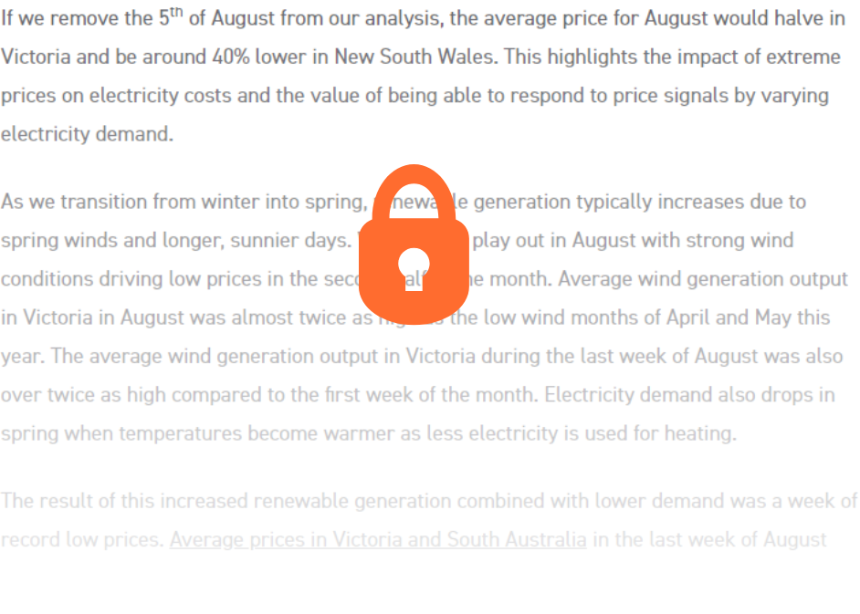 August proved to be a month of extremes. The National Electricity Market (NEM) experienced the highest ever daily average price on the 5th of August followed by the lowest ever weekly average price at the end of the month. In both cases, weather and generation availability were the key drivers (which we will explore in this update). As we move into spring, lower prices are expected to continue as renewable generation increases and demand drops alongside mild temperatures.
